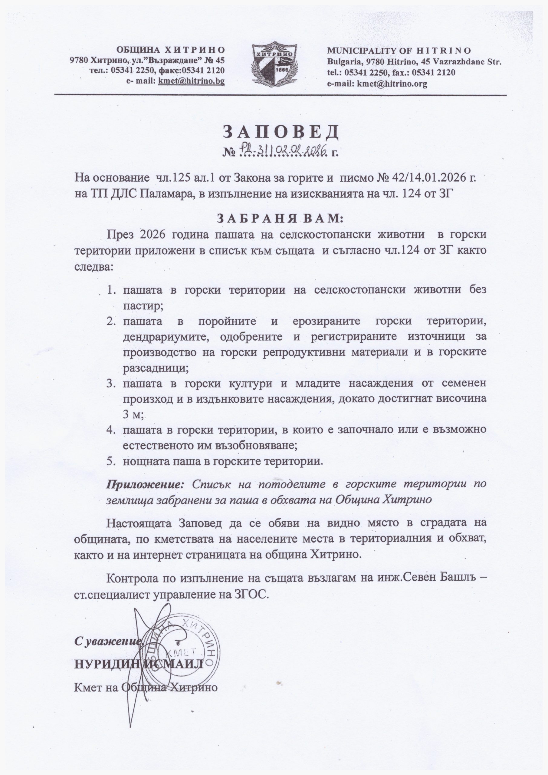 Списък на физически лица желаещи да закупят дърва за огрев в с.ХИТРИНО